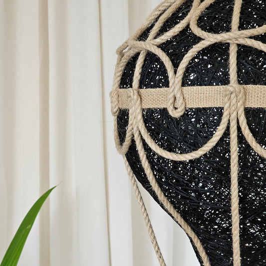 Black lamp with jute rope - balloon